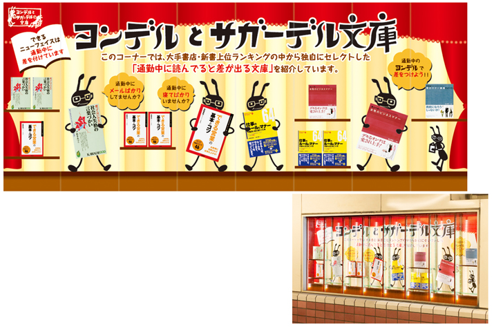 東急線駅売店の文庫コーナー「ヨンデルとサガーデル文庫」のウインドウディスプレイのデザインをさせていただきました。
