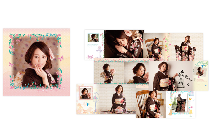 成人式場やカメラショップで販売される成人式用のテンプレートアルバムのデザインをさせていただきました。