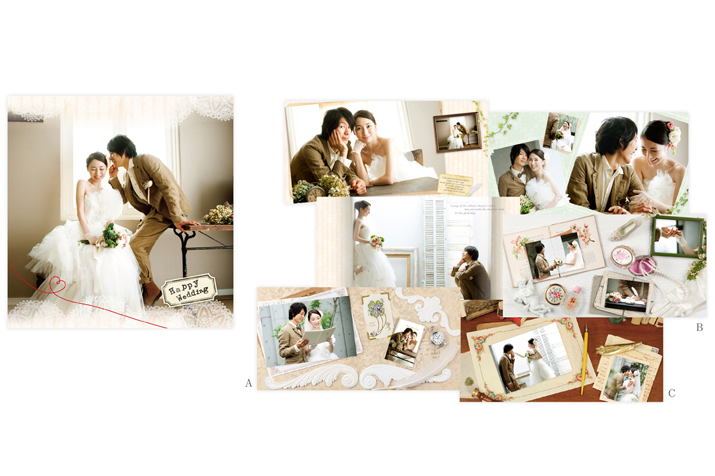 結婚式場やカメラショップで販売される結婚式用のテンプレートアルバムのデザインをさせていただきました。