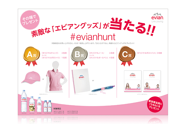 エビアンの量販店用キャンペーンのデザインをさせていただきました。